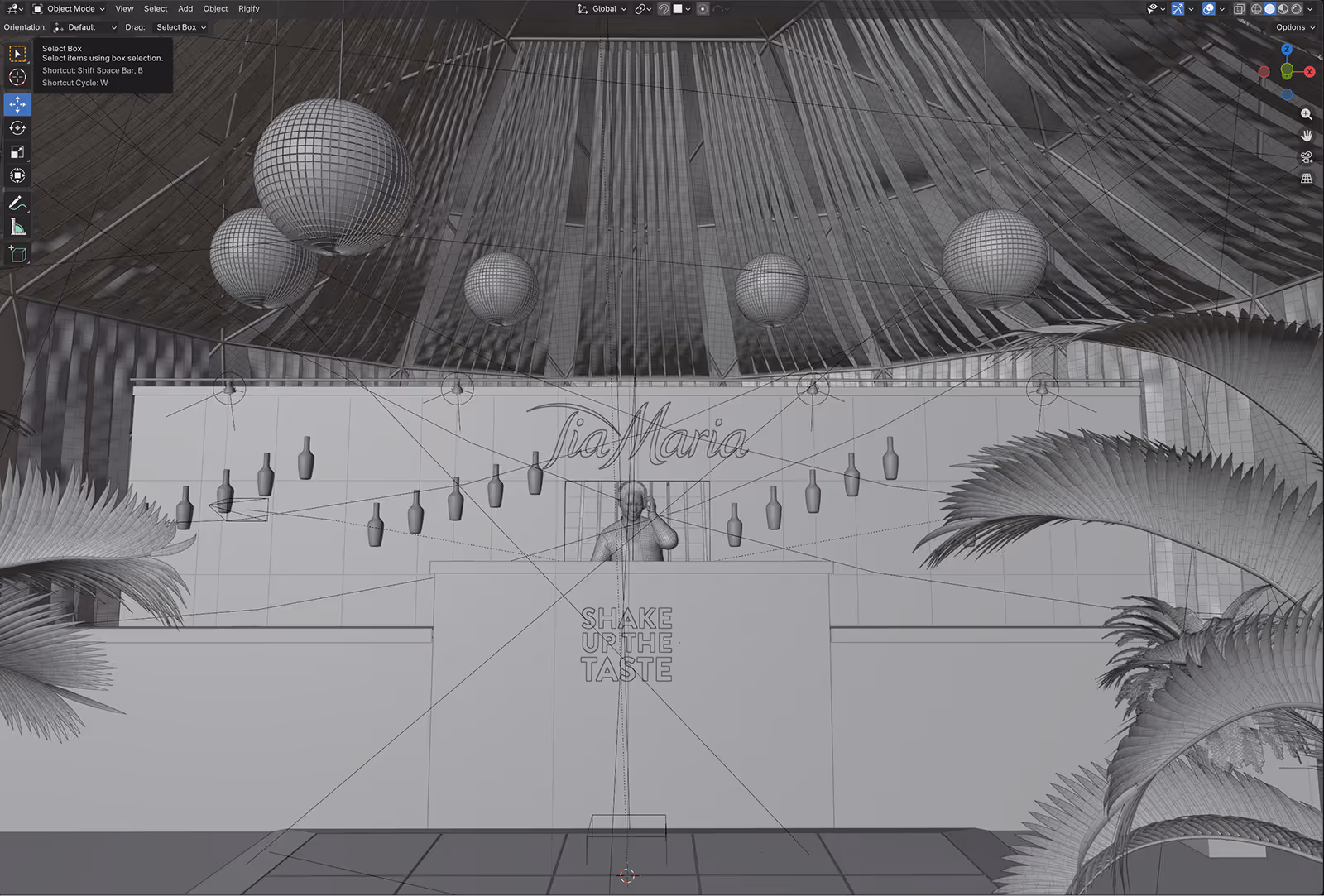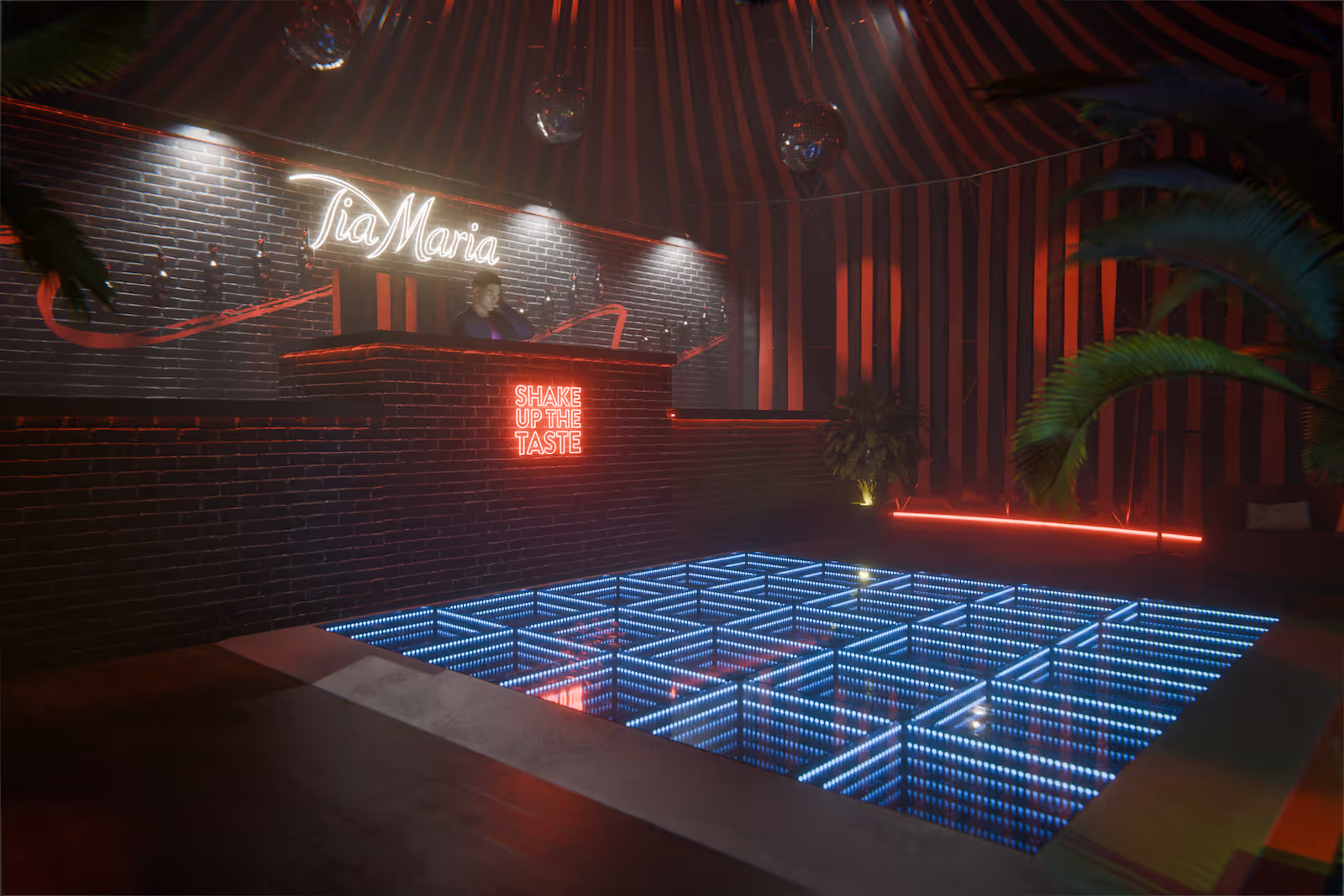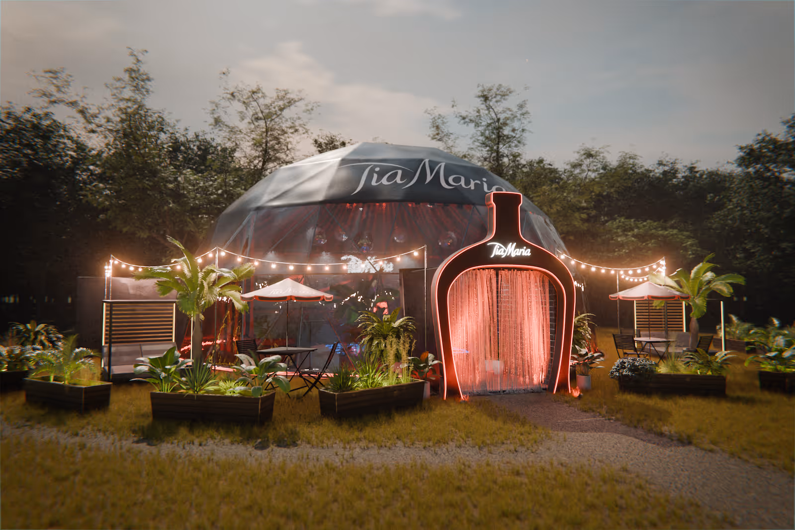 Event concepts for high-end spirits brand visualised for client pitch presentations. Developed from client briefs and early plans into fully realised 3D visuals with bespoke environments, custom modelling, detailed texturing, and final rendered imagery.